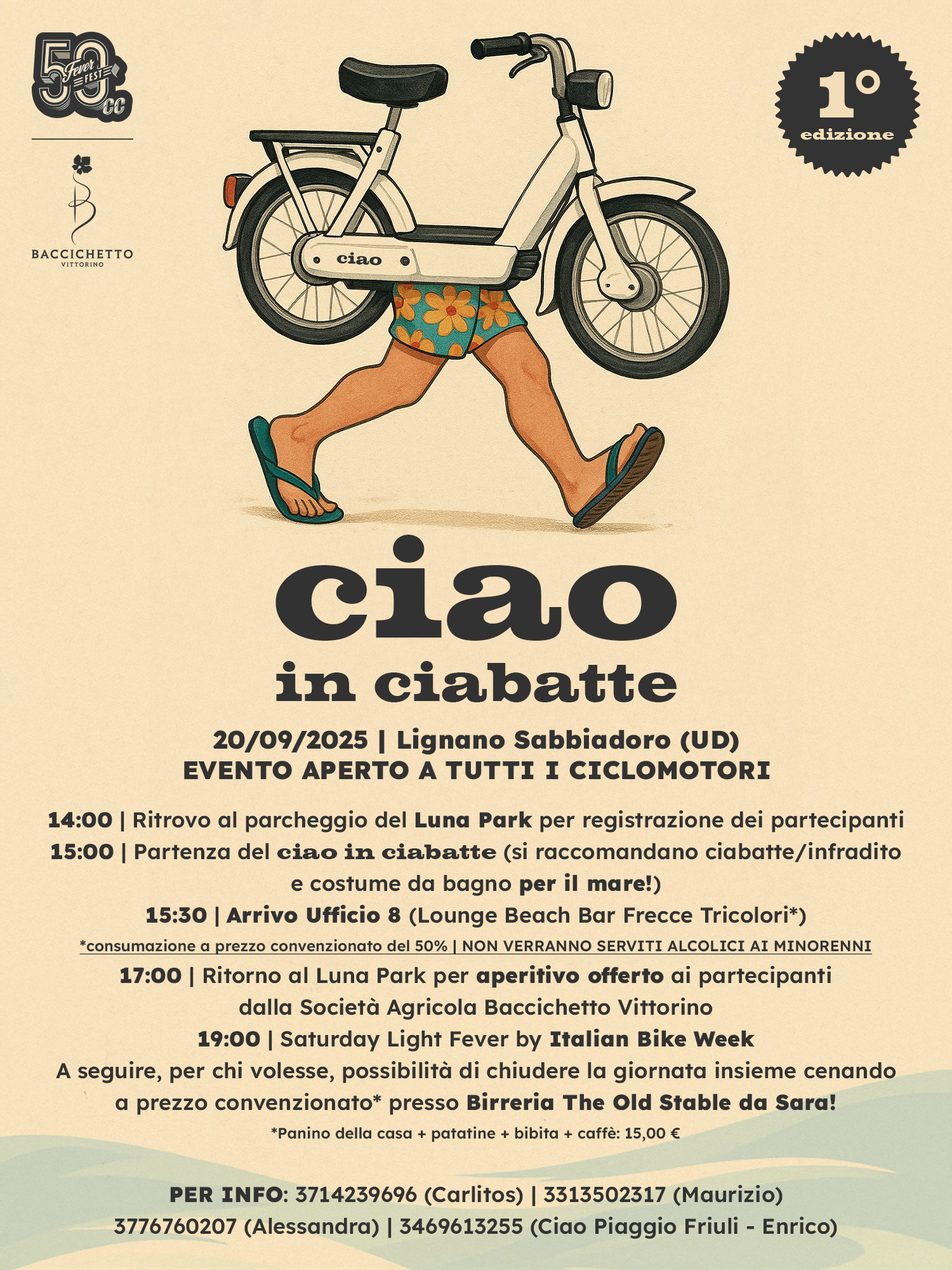 15:00 | Partenza del ciao in ciabatte (si raccomandano ciabatte/infradito e costume da bagno per il mare!)